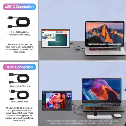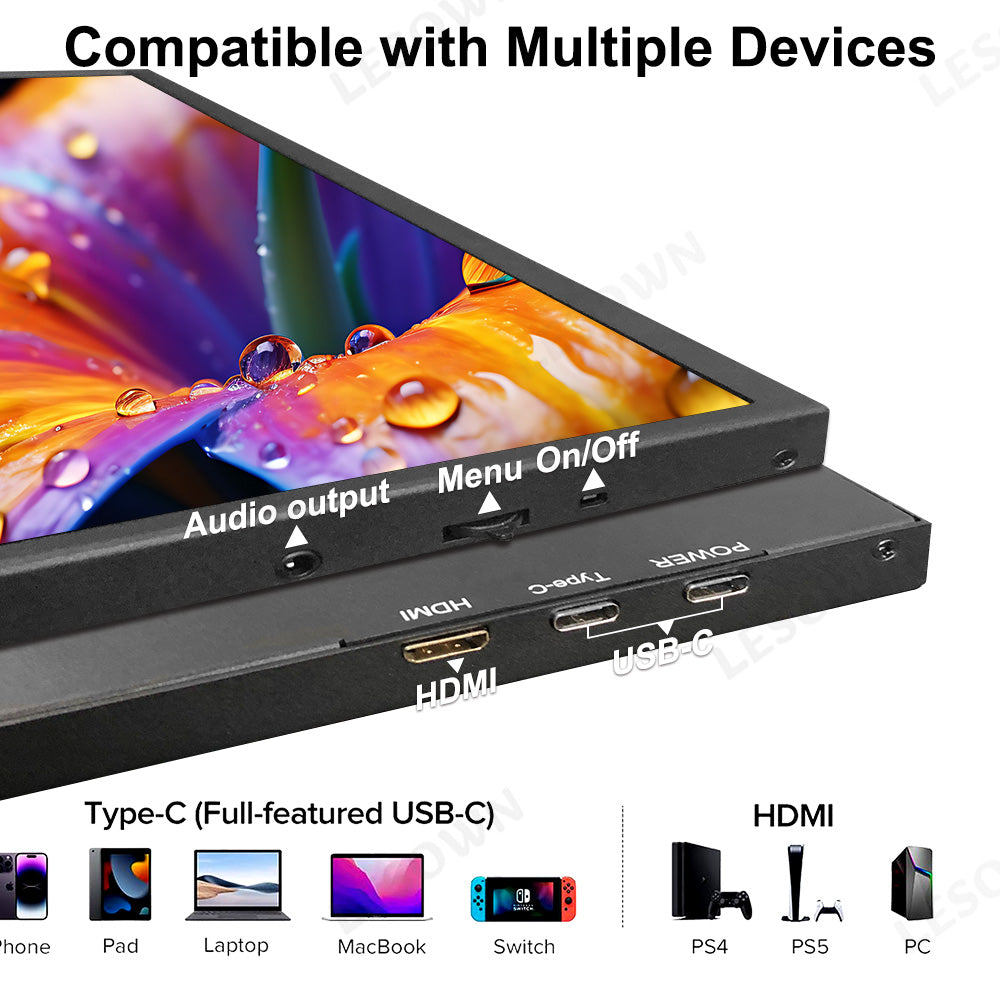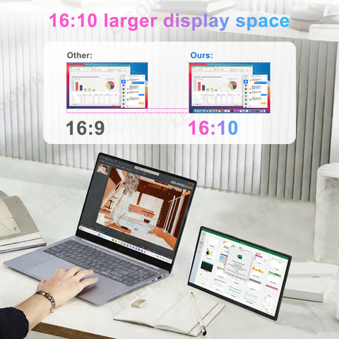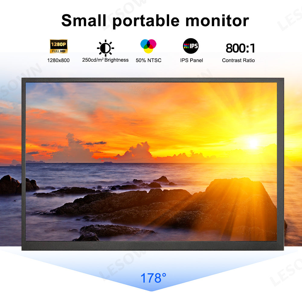 LESOWN P101DP P101DP-T 10.1inch 1280x800 IPS LCD Portable Display Mini Secondary Monitor USB‑C Side Screen Compact Display for Laptop Plug & Play