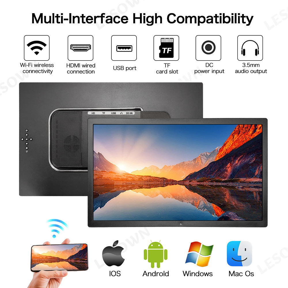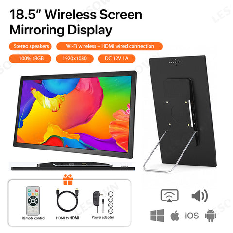 LESOWN P156KPM P185KPM Wireless 15.6 18.5 Inch FHD Portable Monitor Wireless Screen Projection Ideal for Streaming Movies and Reading Documents